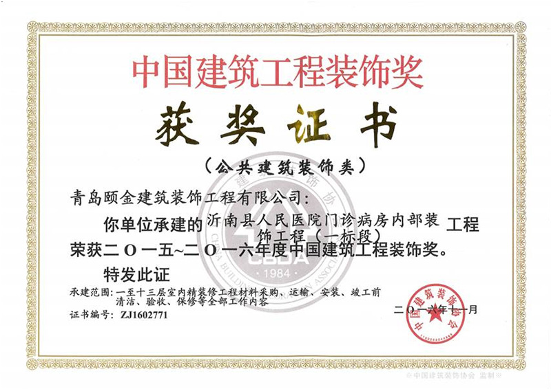 山東省裝飾裝修工程質(zhì)量泰山杯獎(jiǎng)